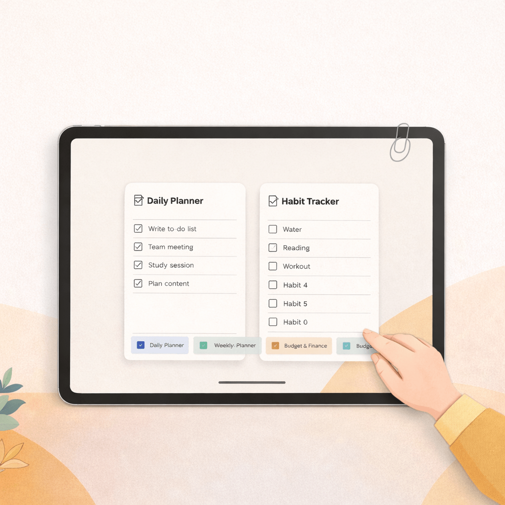Daily, weekly & monthly planning, goals, habits, finances, study & work — sab kuch ek hi digital planner mein.